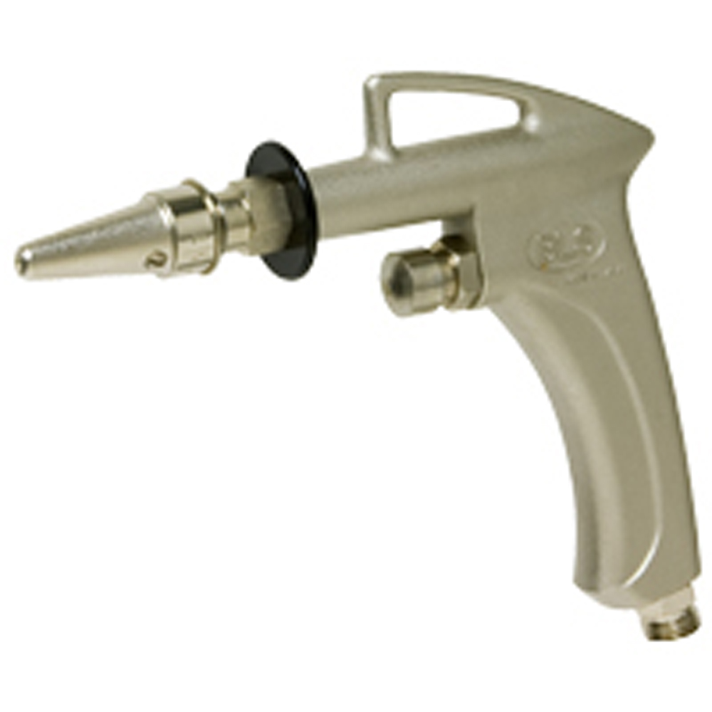 Safety Air Blow Gun. The first air duster ever made with a conical air curtain system to protect workers from injury. OSHA approved. - 1/4" male inlet - Eliminates blowing metal chips - Adjustable air curtain angle - Designed for safety and efficiency
