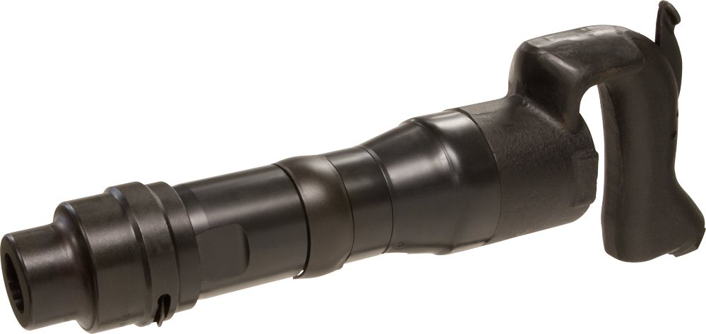 3" Stroke Gooseneck Chipping Hammer - Through valve design. Uses hex shank chipper steel. Excellent for chipping, scaling, cleaning work on castings, billets, and paper box stripping. Smooth throttle characteristics, easy to hold and powerful for its size. Through valve design provides excellent controllability.