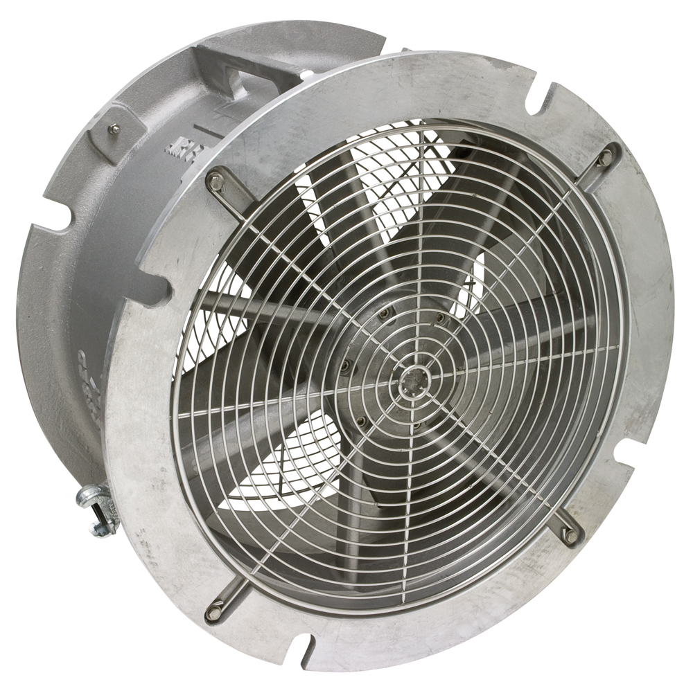 24" Air "Fan" Mover. Features a heavy-duty, cast aluminum, four blade jet design that is versatile for a wide range of applications. Can be used either as a blower or an exhauster, and is well-suited for the removal of hazardous fumes or contaminated air from applications such as welding or sand blasting in confined areas. - Six turbulence-eliminating guide vanes - Operates at lower RPMs while moving more air - Heat treated to T6 aircraft aluminum specifications - Stainless steel fan guard meets OSHA standards - Use for general ventilation - Grounding cable included