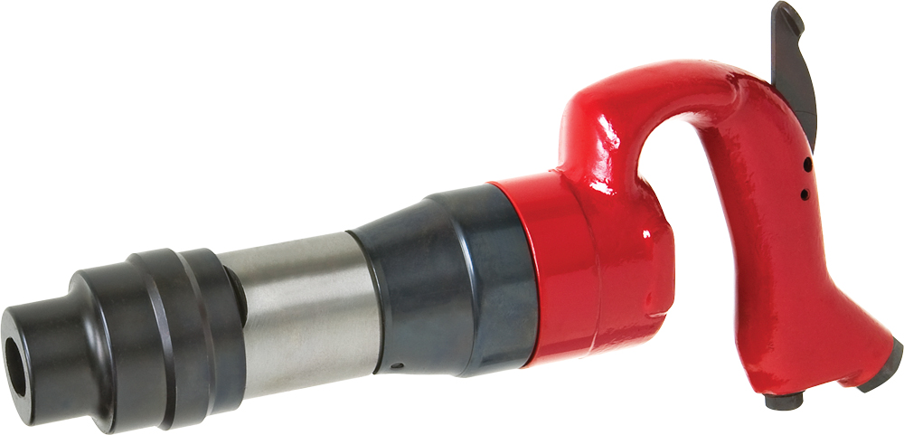 1" Stroke Gooseneck Chipping Hammer. Uses hex shank chipper steel. Featuring plate style valve. Designed for cleaning castings, bushing concrete, and cutting or chipping masonry materials of all types. Ideal for shipyards, foundries and contractors.