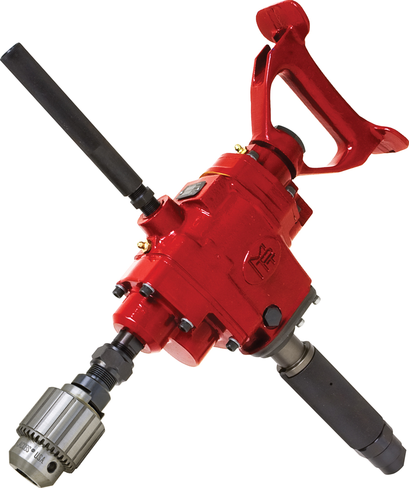 5/8" Extra Heavy-Duty Drill. Ideal for woodboring in marine timbers and railroad repair work. Features include ball bearing support for long life and efficient operation, a graduated roll throttle for speed control, and durable spur gearing. Includes breast plate, dead handle and a built-in lubricator.
