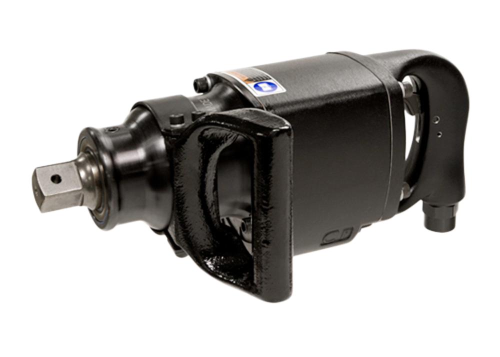 1" Square Drive Inside Trigger Heavy-Duty Straight Impact Wrench. Features a high energy per blow two jaw clutch, rugged steel clutch housing machined from bar stock, bronze alloy end plates for long motor life, a three piece housing allows for easy maintenance. Ideal for steel erection and bolting applications.