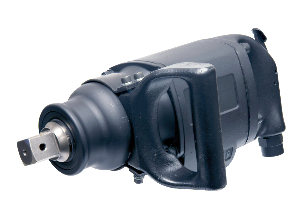 1" Square Drive Outside Trigger Heavy-Duty Straight Impact Wrench. Features a high energy per blow two jaw clutch, rugged steel clutch housing machined from bar stock, bronze alloy end plates for long motor life, a three piece housing allows for easy maintenance. Ideal for steel erection and bolting applications.