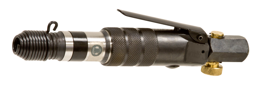 1/16" Capacity Pin Riveter. Used for fine riveting applications, including rivets smaller than 1/16". Can also be used for seating press-fit drive studs, drive screws and spring pins. Includes 1 flat head and 1 round rivet set, suspension bail and beehive retainer.