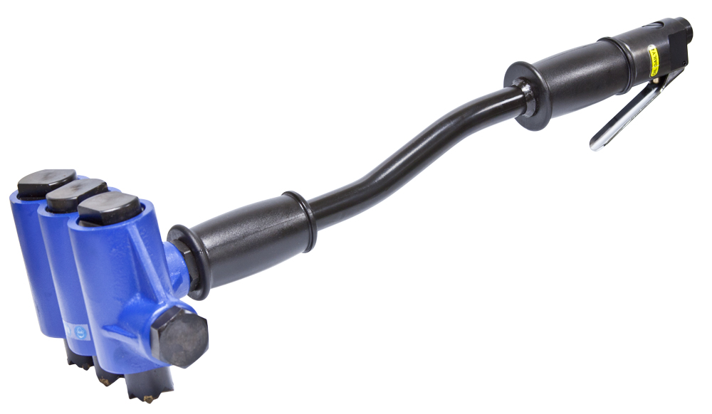 Throttle Lever Extended Handle Triple Piston Scaler. Triple piston scaler, with carbide pistons, designed for cement as well as removing rust and paint. Designed for structural steel and boiler industries.