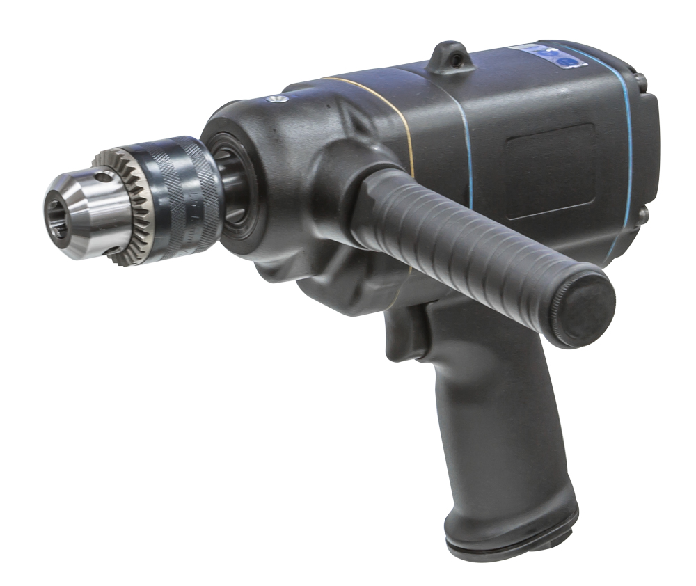 1/2" Reversible Composite Drill. Pistol Made from a high impact resistant composite for jobsite durabiltiy. Features comfort grip and suspension bail for reducing operator fatigue. Replacement Jacobs 33BA-0.500 chuck available.