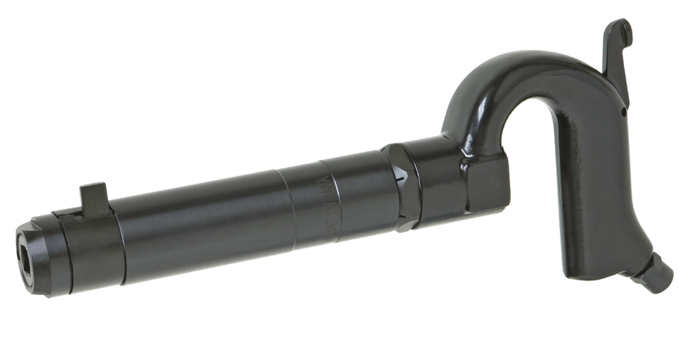 Gooseneck Needle Scaler. Easy to handle, powerful tool widely used as a general purpose hammer for chipping stone, metal, concrete, brick and for carving wood. Chisels are held firmly in place and cannot rotate. Chisels easily changed with a quick release lever.