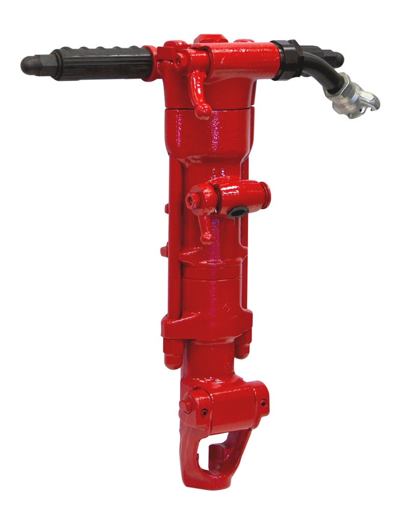 60 LB Class Rock Drill. The high power-to-weight ratio makes this tool an excellent choice for any job you have. Features rifle bar rotation with high impact energy for drilling in hard rock. High penetration rate and blower type air valve provides rapid cleaning of the hole for increased operational efficiency. Sturdy latch type retainer keeps your drill steel locked on track. A great choice for blast hole drilling, maintenance work and mud jacking. Easy drill depths up to 20 feet. Equipped with a latch type retainer.