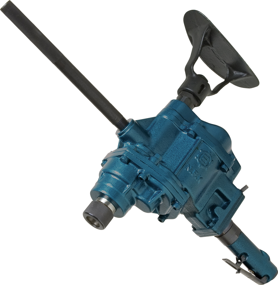 Heavy-Duty 1" Drilling Capacity 3MT Reversible Drill. Equipped with safety lever throttle, feed screw and dead handle. Ideal for production work as they have absolutely smooth operation for accurate drilling, reaming, tapping and nutrunning. They possess the lugging power to keep their speed when under load. Their power and efficiency make them ideal tools for use in railroad shops, shipyards, tool rooms and all types of construction work. Features ball bearing support for long life. - 3/8" air inlet thread requiring avg air consumption of 50 cfm - Recommended hose size of 1/2" - Built-in lubricator - Spindle protection nut (2M and 3M spindles only) - 3 hp - 4" feed length