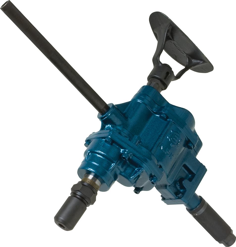 Heavy-Duty 1-1/4" Drilling Capacity Reversible Underwater Woodboring Drill. Equipped with safety lever throttle, breast plate and dead handle. Ideal for production work as they have absolutely smooth operation for accurate drilling, reaming, tapping and nutrunning. They possess the lugging power to keep their speed when under load. Their power and efficiency make them ideal tools for use in railroad shops, shipyards, tool rooms and all types of construction work. Features ball bearing support for long life. - 3/8" air inlet thread requiring avg air consumption of 50 cfm - Recommended hose size of 1/2" - Built-in lubricator - Spindle protection nut (2M and 3M spindles only) - 3 hp - 4" feed length